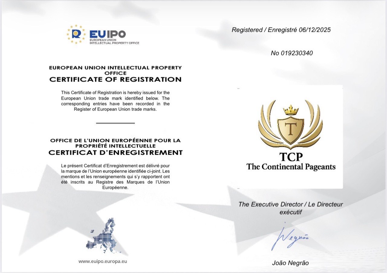 The Continental Pageants Europe® is a registered European Union trademark (EUTM No. 019230340) filed and protected under EUIPO (European Union Intellectual Property Office).